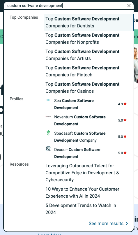 Important note here – Results are by default sorted by the sponsored first. Which means, on the top you see the companies that paid Clutch the most, to be there.
