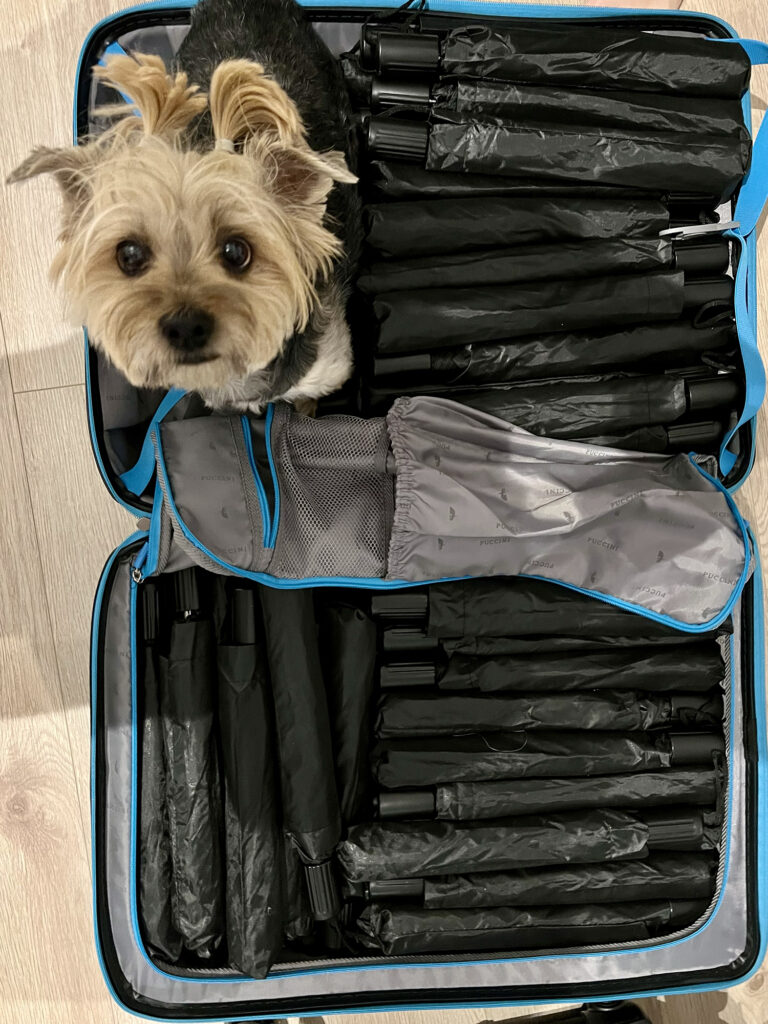 Pro tip: We had a pretty big front desk, so we could put the supplies and private stuff in there, although we still hid the luggage in the back of the booth. So plan where you will put more sweets, gadgets, printed materials, but also jackets, sweatshirts, etc., so they won’t end up on the floor.